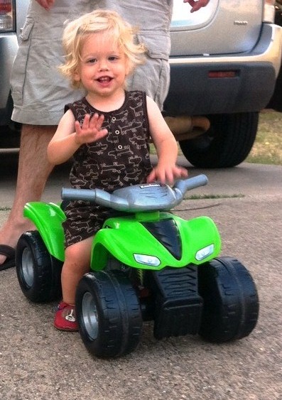 Yup - a spontaneous haircut done by a man who is like another grandfather to Buttin. Grandpa Jim decided Cub needed his bangs cut - you can see how excited Cub was about the haircut.